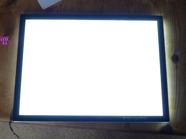 Once I'm happy with the images, I trace them onto a clean sheet of paper using a black pen. For this process, investing in an LED light-box turned out to be £40 very well spent.