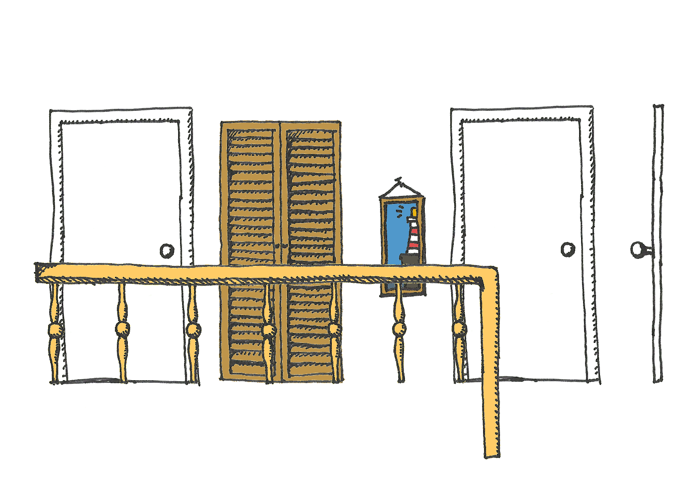 Having drawn, scanned in and coloured the images for a room and the objects within it, I then had to turn those images into the resources I would need within the game. This is where having a dedicated game creation package, with its ability to drag and drop your objects using a graphical interface, would have been very handy. However, it turns out that you can get most of the way there using GIMP's built in support for Layers within images, along with a bit of scripting.